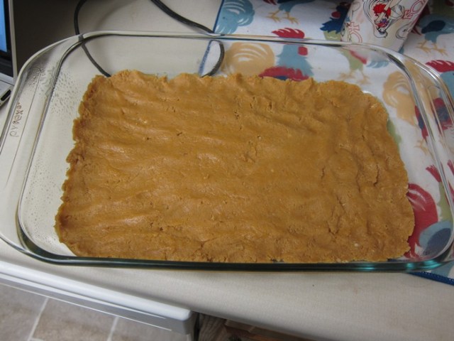 Press a bit more than half of the oat mixture evenly into the prepared pan.