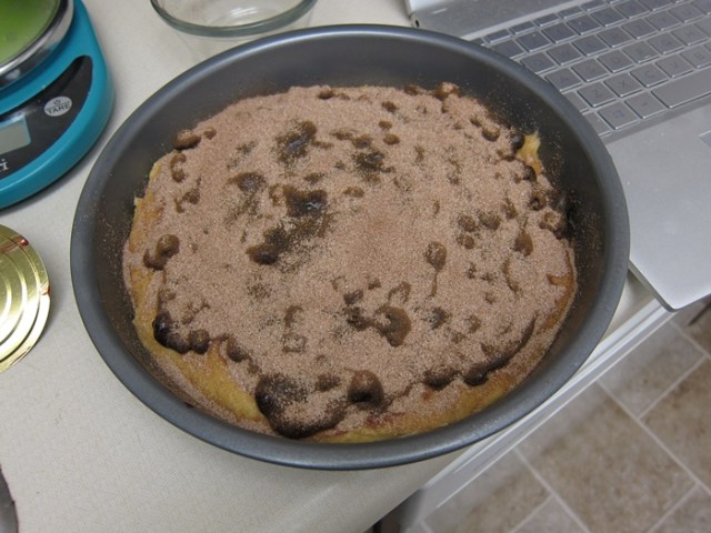 Sprinkle with the cinnamon/sugar mix – this looks like A LOT now but is just a light taste of cinnamon in the finished product.