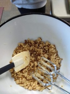 Press the crumbs evenly into the bottom of the pan and bake 10 minutes. Pull the baked crust out of the oven and reduce the heat to 325 degrees. Set the crust aside to cool while you make the filling.