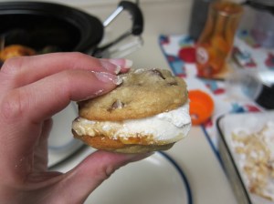 Turn heat on to high, and cook approximately 3 hours – even my double-dough one was cooked through fine at 3, but I don’t think it’ll be ruined if you can’t get it out until 3 1/2.