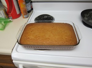 Take the baked cake from the oven and gently pour the prepared topping over the top. Bake an additional 10 minutes. Remove from the oven and eat warm, with the glaze still runny, or let cool and eat with the glaze set. Most likely, eat some hot right away and then leftovers cool later!