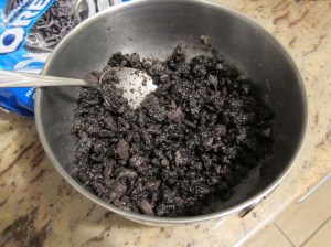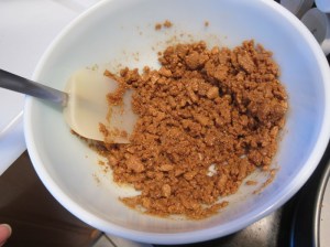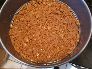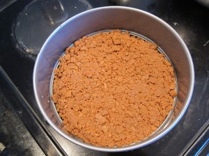 Press evenly into the bottom of a 9″ springform, and up the sides if you have enough crumbs.