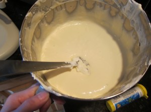 Remove from the heat and stir in the eggs, sugars, and vanilla, stirring again until smooth.