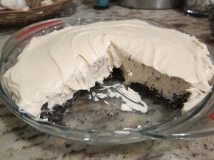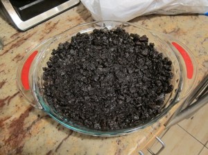 Pour the cookie mixture into a pie dish and press evenly into the bottom and up the sides. Bake 10 minutes, then set aside to cool.