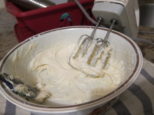 Add the sour cream and beat on low until mixed.