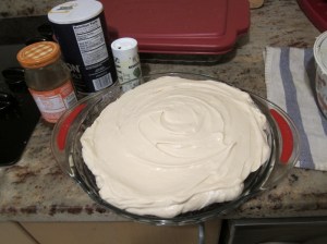 Gently pour the filling into the pie crust, then refrigerate at least 8 hours before serving.