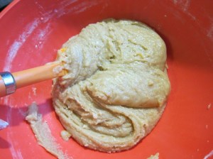 Pour the liquids into the well in the dry mixture. Mix together until the dough holds together.