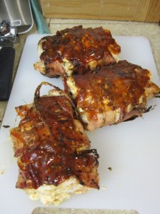 Spread 1/4 of the cream cheese mixture on the chicken.