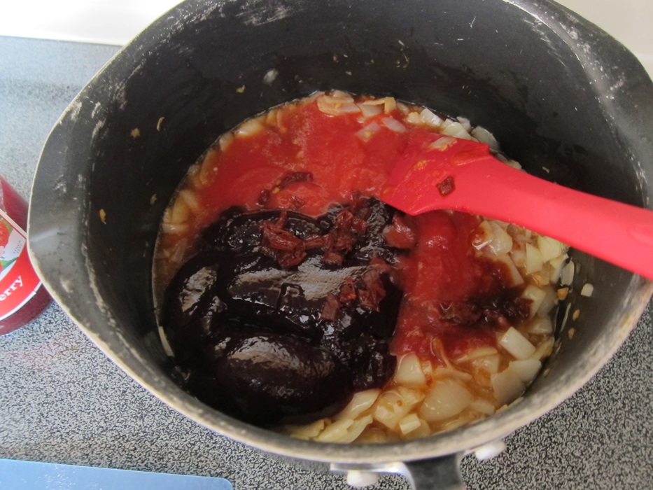 Continue to cook until there is very little excess liquid to pool if you tilt the pot, approximately another 7 minutes.