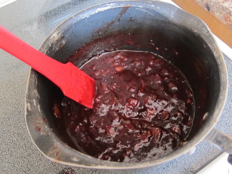 Spoon the pear jam over the filling.