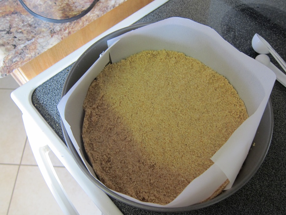 Press evenly into the bottom of the lined pan, then freeze until firm, about 15 minutes.