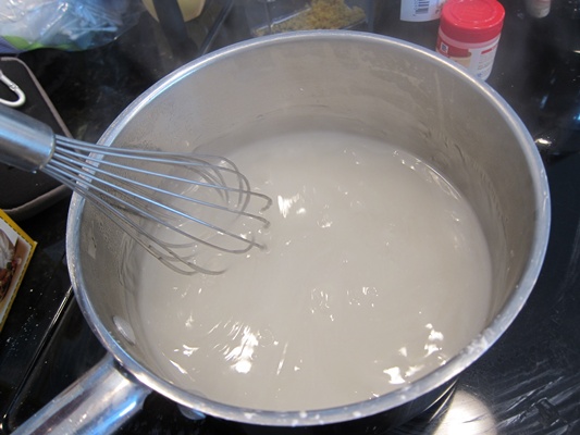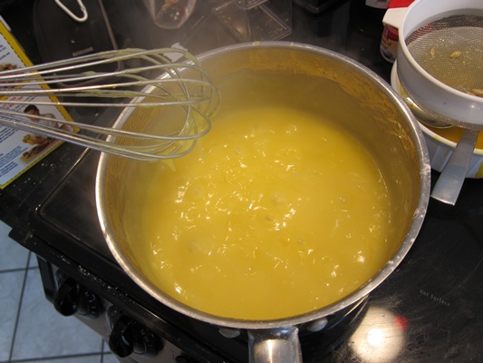 Whisk in the zest, then lemon juice, and finally the butter. Bring to a solid simmer, whisking constantly, then remove from the heat.