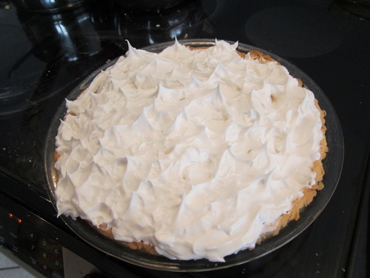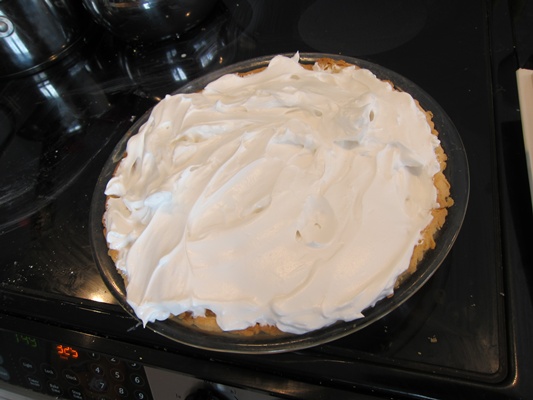 Immediately spread the meringue around the edge of the filling.