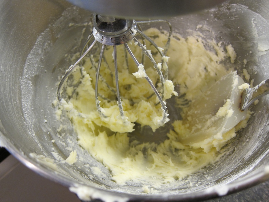 Transfer the mixture to a bowl and beat in the butter and vanilla until fully incorporated.
