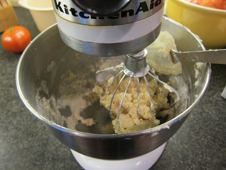 Beat the eggs into the cornstarch mixture, followed by the egg yolks.
