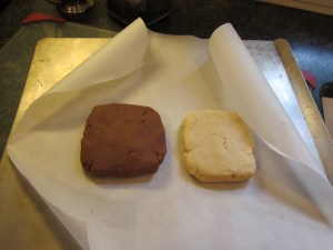 Meanwhile, mix together the salted butter and smaller amount of flour, then shape into a 4.5″ square. Wrap in saran wrap and chill about 15 minutes until solid but workable.