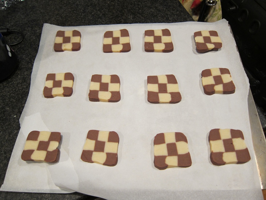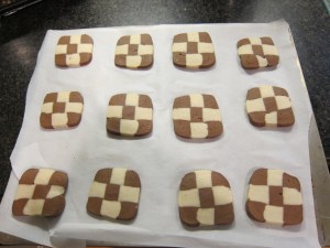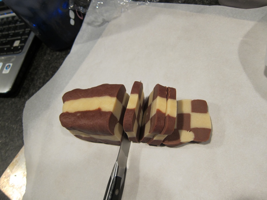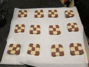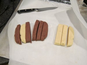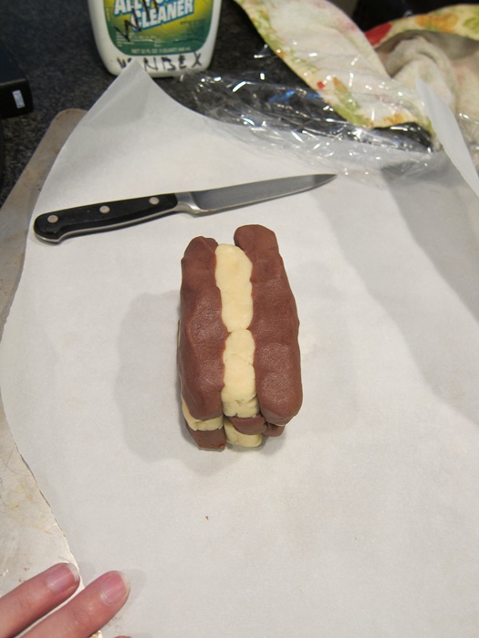 Take the pastry back out of the fridge, and quickly spread the icing over the top. Still working quickly, draw thin lines of chocolate the length of the pastry. I didn’t end up using even half the chocolate, I don’t think. Using a sharp knife, draw lines up and down through the icing and chocolate, creating a pattern.