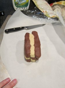 This should look thicker, but like I said, my pastry cream didn’t thicken well, so half of it ran out the sides.