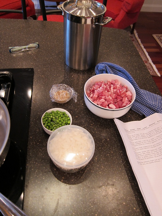 Add the remaining 1/4 cup of milk and the cornstarch and whisk thoroughly. When the milk on the stove has reached a simmer, pour it into the milk mixture in the bowl in a slow, thin stream, whisking the mixture in the bowl constantly while you do so. You only want to add the hot milk a bit at a time so it doesn’t cook the egg yolks in the bowl.
