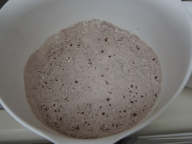 Add the milk, oil, and vanilla into the well, then stir together until smooth.
