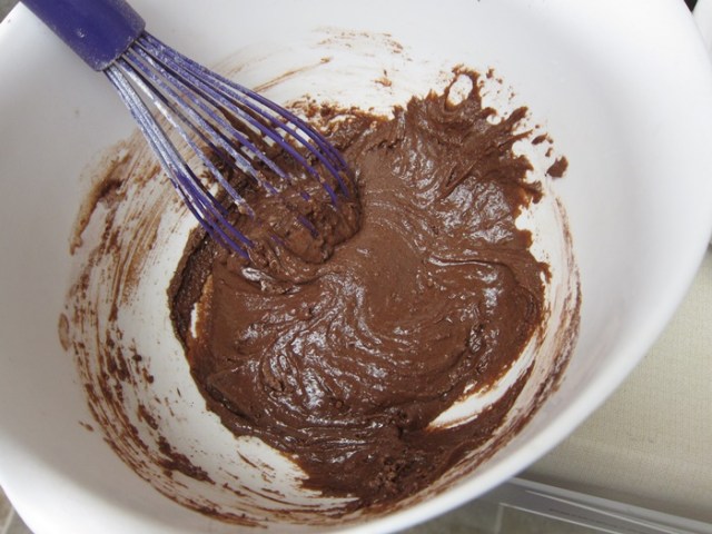 In a small bowl, combine the cocoa and sugar for the topping. Pour in the boiling water and whisk until smooth.