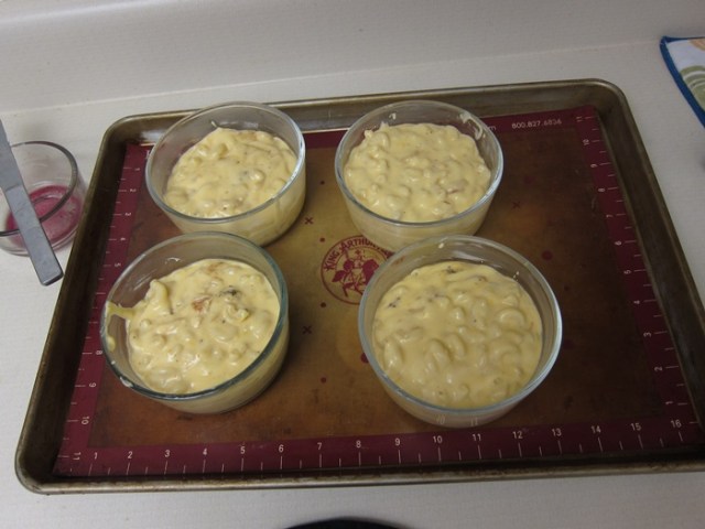 Stir the pasta into the cheese sauce, then spoon into the prepared dish(es).