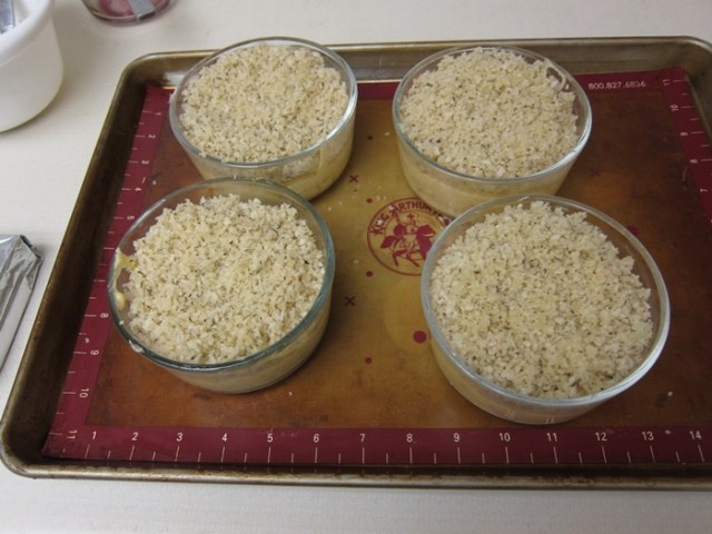 Melt the butter and add the garlic oil and pizza seasoning. Stir into the Panko in a small bowl, then spread a thick layer over the macaroni.