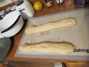 When I was home a month or so ago, I tried this recipe. It was a disaster! I didn’t thicken the filling enough, so I was basically trying to roll a dough filled with pudding, and then when I’d nearly muddled through, I went outside to meet a repair man and my dad’s dogs stole and ate the entire thing, leaving a surprisingly clean floor and counter.