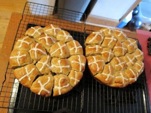 Remove to a wire rack to cool. Once cool, whisk together the glaze ingredients and drizzle over the buns if desired.