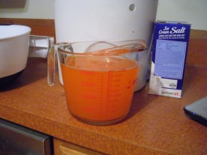 Turn the mixture out onto a heavily floured surface and knead until a soft dough forms. Holding the dough in one hand, re-flour your work surface. Pat the dough into a rough disk, putting it down on the floured surface when it gets too big to conveniently hold. The book said one inch thick, but then shows scones much, much thinner. I’d aim for half an inch thick, max.